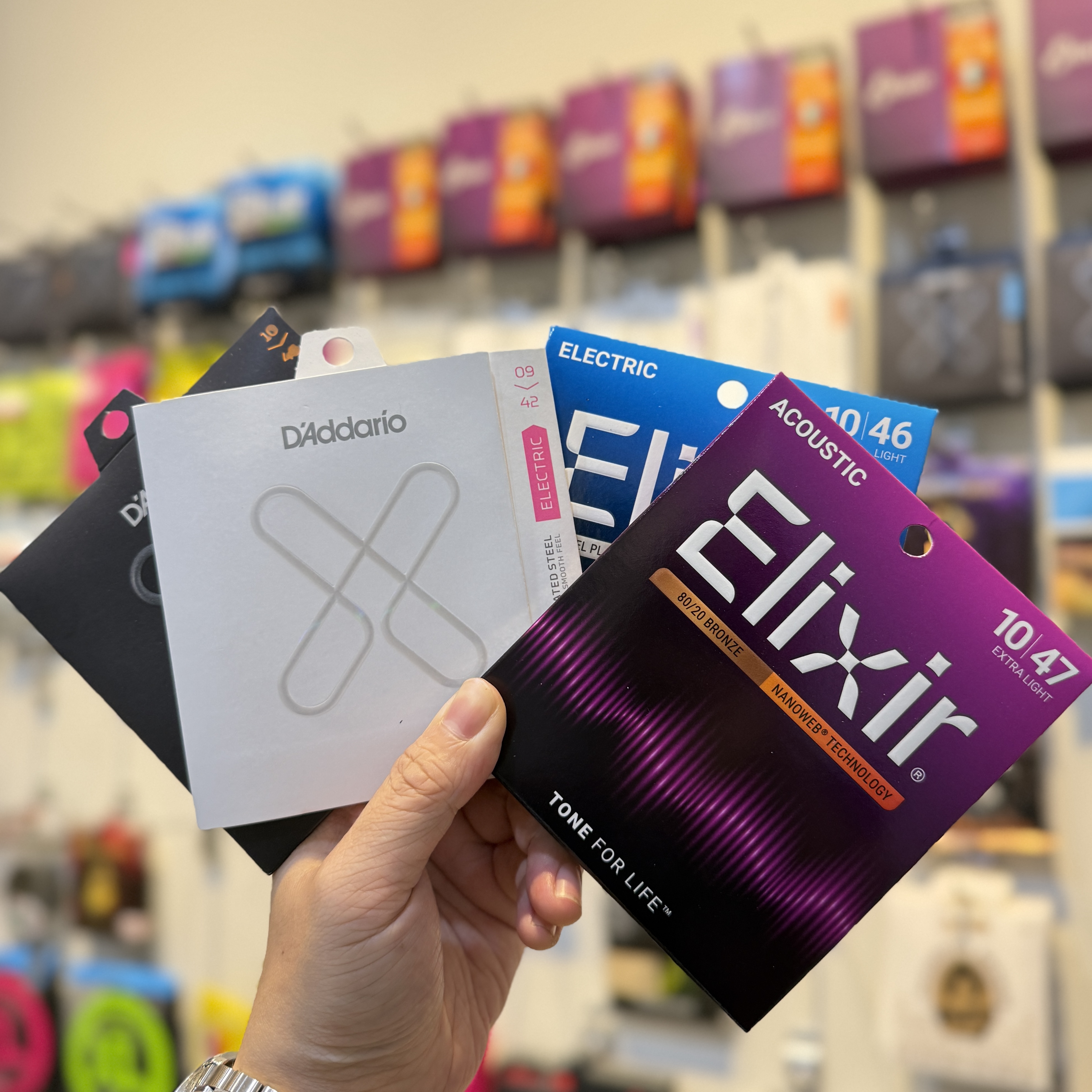 吉他包覆弦推薦嗎?不同玩家其實答案不一樣 發布日期:2026-04-15包覆弦主要差在壽命在門市最常遇到的狀況,是客人因為弦容易生鏽而開始考慮包覆弦。如果你是手汗比較多或使用頻率高的玩家,包覆弦幾乎會變成必需品。實際在挑弦的時候,多半是在壽命(花費)、手感、音色三者之間取捨,而不是單一標準。包覆弦的存在,主要改變的是使用週期,而不是單純讓聲音變好。包覆弦是怎麼運作的包覆弦的核心,是在弦表面加上一層「保護塗層」,降低金屬與空氣、水分接觸的機會。這樣可以有效延緩氧化,也就是大多數人說的生鏽問題。這層塗層除了影響壽命,也會連帶改變手感與聲音表現。通常會變得比較滑,聲音則會稍微收斂,這也是很多人第一次使用時最直接的感受。包覆厚度影響聲音包覆弦的塗層厚度,會直接影響音色與手感。膜越厚,保護效果越好,壽命也越長,但聲音會比較集中,細節會被稍微收掉。以 Elixir 為例,「Polyweb」、「Nanoweb」、「Optiweb」其實就是厚度差異。實際彈起來會很明顯,越薄的版本,會越接近無包覆弦的自然感。以我自己的使用經驗來說,Elixir 整體會讓低頻增加,聲音有一層被包住的感覺。Optiweb 相對自然,但如果是我個人習慣,還是會偏好無包覆弦。不同品牌做法差異近幾年像 D'Addario 推出的 XS 與 XT,做法和傳統包覆弦不太一樣。XS 是外層包覆,手感滑順、壽命也相對長。XT 則是把保護放在弦心,外層維持比較接近原始弦的觸感。實際使用上會比較自然,但壽命還是會比一般弦再好一些。壽命與成本的關係一般來說,包覆弦的壽命大約是無包覆弦的兩倍左右,價格也差不多落在同樣區間。它的優勢不一定是更便宜,而是減少更換次數。在門市曾遇過比較極端的案例,有客人使用一般弦大約 2~3 天就全部生鏽。這種情況下,包覆弦不只是耐用,而是直接影響整體使用成本。使用情境會影響選擇實際在門市觀察,選弦很少是單一因素決定的。有些人重視音色,有些人重視穩定性,也有人只是希望不要一直換弦。如果比較在意聲音的開放感,通常會偏向無包覆弦。如果希望使用過程穩定、減少維護頻率,包覆弦會是比較合理的選擇。市場選擇越來越多以前包覆弦幾乎是 Elixir 的市場,但近幾年包含 D'Addario 在內的品牌,都開始推出不同類型的包覆弦。這代表這個需求確實存在,而且逐漸變成主流。對使用者來說,選擇變多,也更容易找到適合自己的產品。最後還是回到實際體驗不同品牌在手感、音色與壽命上的差異,用看的很難完全理解。很多時候都是實際裝上去彈過,才會知道自己適不適合。在門市也很常看到,同一個人最後選擇的原因,可能只是因為某一款彈起來比較順。這種差異沒有標準答案,還是回到個人使用習慣。手汗多或容易生鏽 → 直接選包覆弦,是最省事的選擇。 在意音色開放感 → 優先考慮無包覆弦或薄膜款(Optiweb / D'Addario XT)。 懶得換弦 → 包覆弦,減少維護頻率。 想找平衡點 → D'Addario XS 或 XT 是比較安全的入門方向。 有任何選弦問題,歡迎直接來門市試弦,弦這件事裝上去感受最直接。