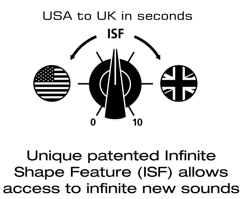 常規的吉他EQ,是傳統前級自己特有“聲音”的關鍵。經典前級設計具有自己Tone,定型了他們的Tone。ISF控件能夠以前所未有的方式調整任何發聲之間的音調控製。您可以設計自己的聲音,並真正找到“你要的音色”
