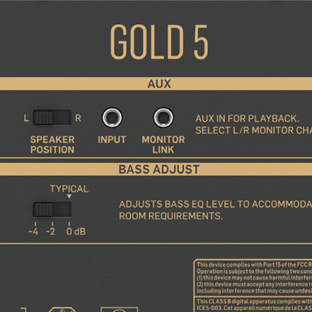 GOLD 5 由英國90年歷史廠牌 TANNOY 設計,用低調奢華的金邊設計,呈現 TANNOY 最原始的品牌理念。GOLD 5 在 in-put 上提供 XLR,TRS,並有單顆喇叭可調整輸出,CLASS A/B 系統,可選自動待機模式,能夠滿足多種播放環境的限制,讓你不再被空間及設備限制。不管是錄音,剪輯,混音,監聽設備最重要的是準確性以及未經渲染的呈現最原始的聲音。無論你本來就是 Tannoy 產品的使用者抑或是剛要踏入監聽的初學者,GOLD 5 都將讓你驚艷不已。